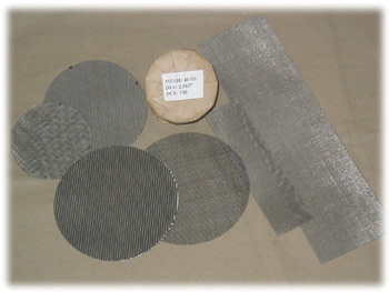 All insulated wire and cable manufacturers require extruder screens. We offer a complete line of stainless and plain steel screens in a wide variety of shapes and mesh sizes, plain or twilled in standard or Dutch weave. These are readily available from stock in most cases. We can also supply multi-screen packs and other metals. Call us with your special needs.