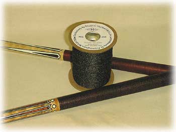 The finest billiard and pool cues have used Stuart Hurlbert’s #256 100% linen cue cord wrap for many years. The traditional cord is black with a white spot, producing a marble like effect. However, more and more color options are now available and the effects are spectacular. The Hurlbert cue cord is renowned in the industry for vibrant colors and for the high quality of the finish obtainable after pressing the cord to the cue.